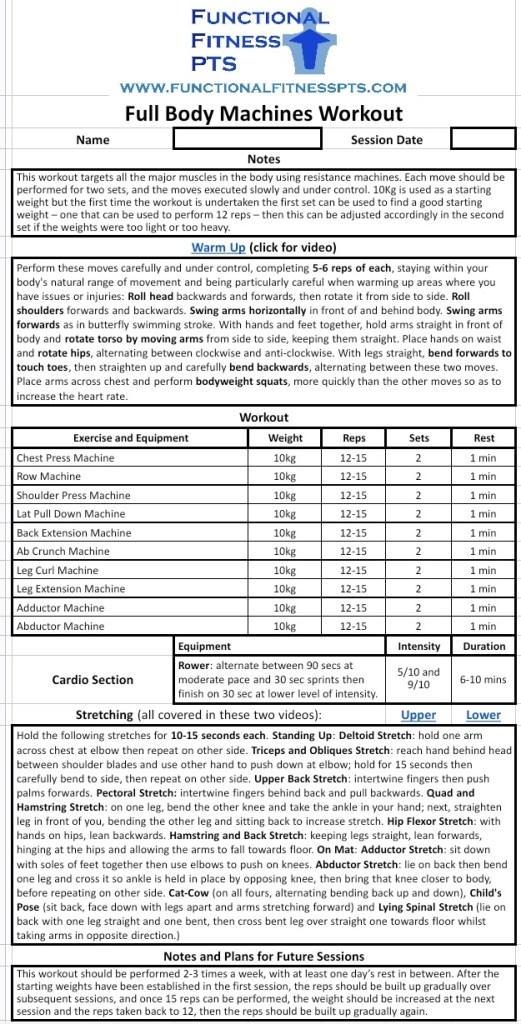 They’re intended as guidelines for anyone who’s new to the gym, so can be used by personal trainers when training inexperienced clients or individuals who’ve just started working out and want some basic pointers to help them out (though in either case please read the disclaimer at the bottom of this page).