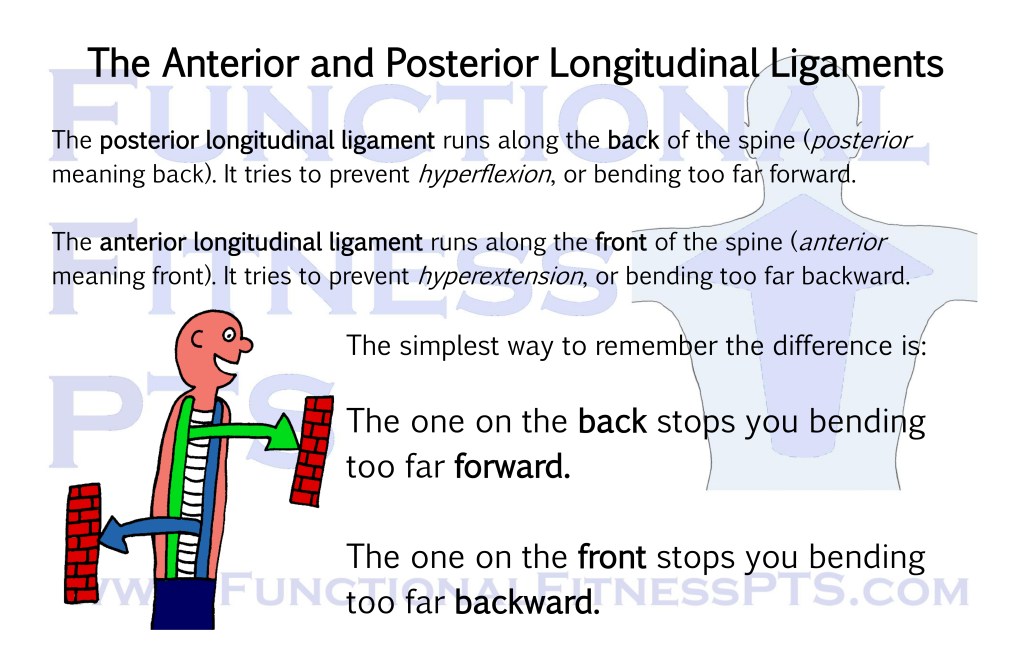 The Anterior and Posterior Longitudinal Ligaments: two ligaments that prevent excessive bending of the spine.