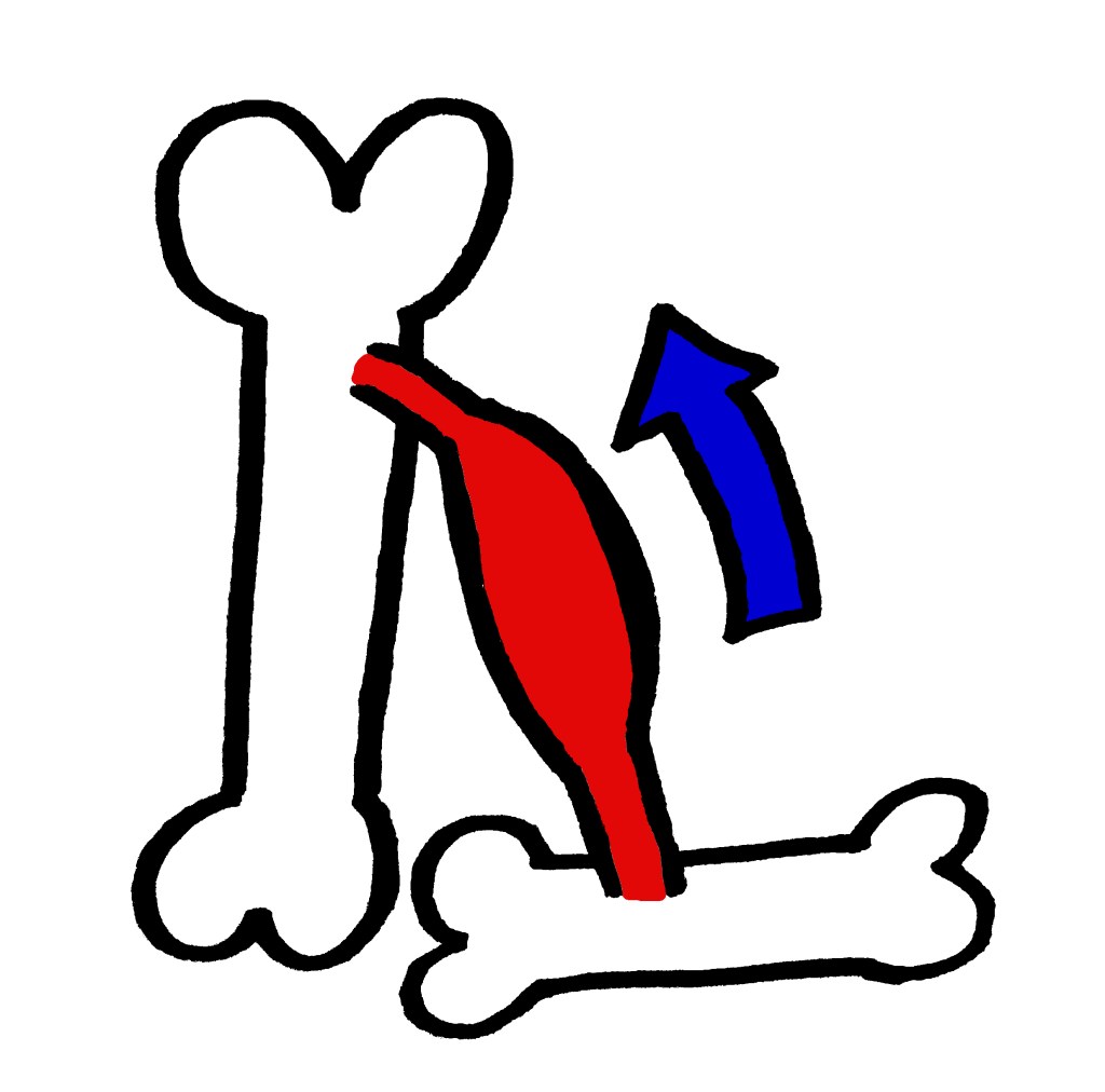 For an example of this, think of your arm. The elbow is the hinge, and the bicep muscles cross from the humerus (upper arm) to the radius (lower arm). When the bicep contracts it pulls the forearm closer to the upper arm, as in a bicep curl.
